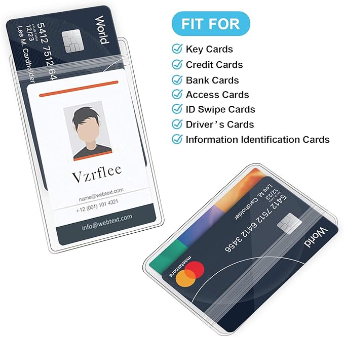 - 2 Different Large Water Resistant Work ID Card Holder: 3.54"x2.52"(89x64mm) and 3.7"x2.17"(94x55mm) Insert size can easily hold 3 standard credit cards or similar thick items such as cruise cards, access cards, cash, keys, business cards etc. The clear top resealable zipper keeps out dirt and moisture to help protect your employee identification safe and secure. Also come with a key chain that can be hanged on the badge reel or on the necklace, convenient for you to use.