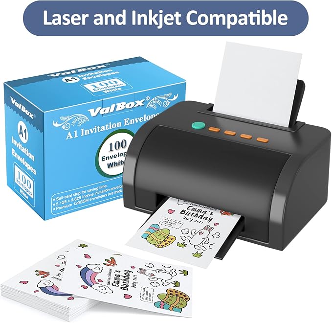 - 【Printer Friendly】 Print with your Laser and Inkjet Printers on our A1 greeting card envelopes. Perfect size and weight, never worry about smudging or having the envelopes engulfed by your printer.