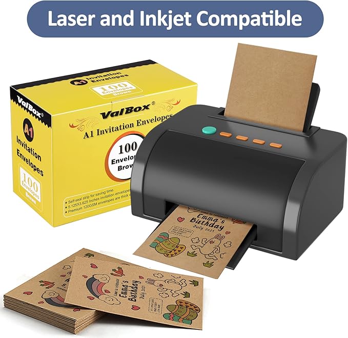 - 【Printer Friendly】 Print with your Laser and Inkjet Printers on our A1 greeting card envelopes. Perfect size and weight, never worry about smudging or having the envelopes engulfed by your printer.