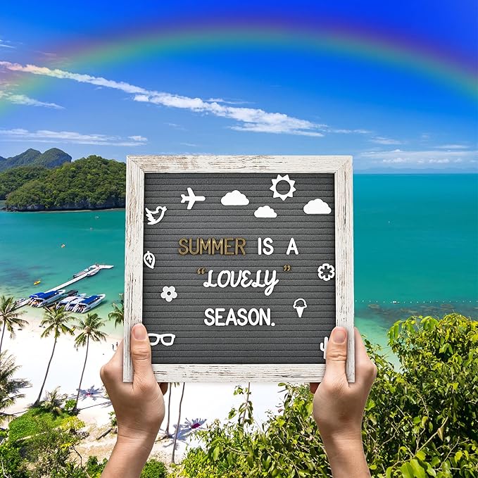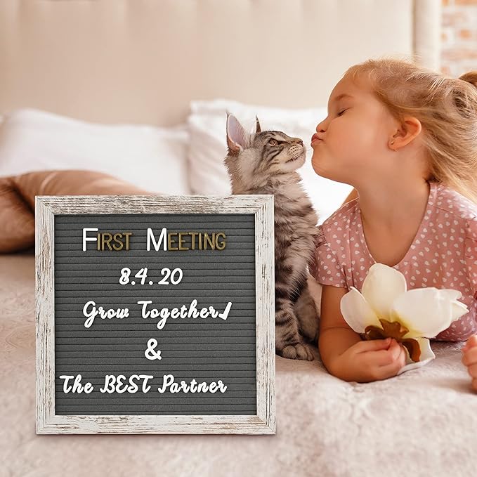 Felt Letter Board 10x10 Inch with Rustic Wood Frame, Pre Cut & Sorted 725 Letters, First Day of School Board, Classroom Decor Farmhouse Wall Decor Sign Board, Baby Announcements, Shabby Vintage Decor