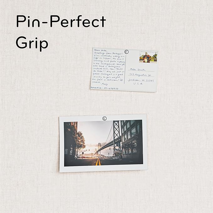 - SHARE, CREATE, COLLABORATE: Elevate your environment and share your ideas, inspiration, and important notes effortlessly with this 23"x17" linen bulletin board that adds a contemporary touch to any office, classroom, or home decor