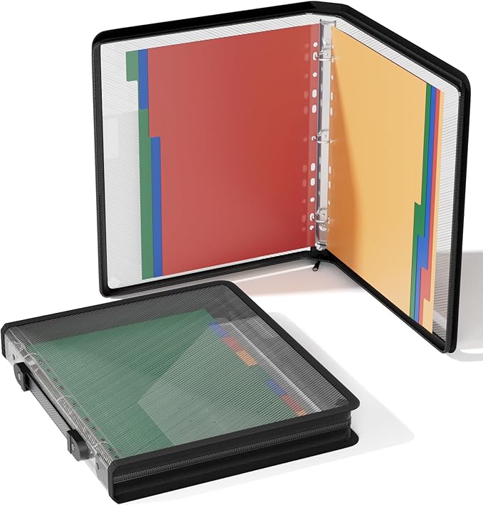 - 📁【EASY TO OPERN & CLOSE】Durable Zipper Closure on the Poly binder allows you to keep documents locked down when closed and accessible with ease to open. Easy to open and close, no need to squeeze your fingers. The ample capacity makes it a breeze to store large-capacity files and is not easy to misplace.