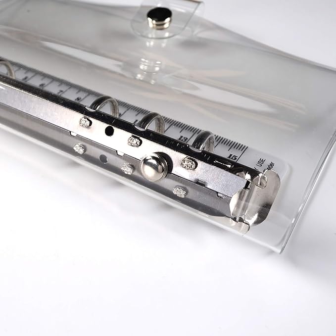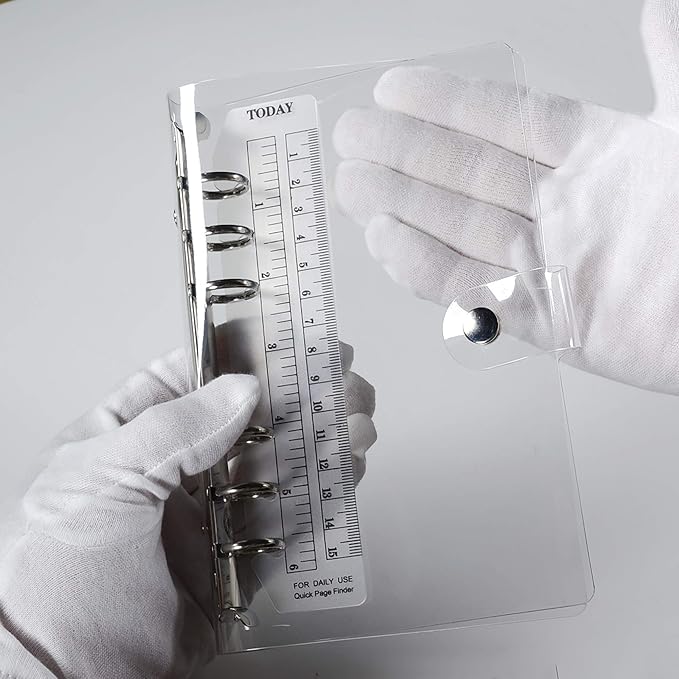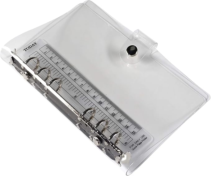 Ancicraft A6 Binder 6 Ring Cover Clean Transparent Soft PVC for Refillable Notebook Shell with Snap Closure and 1 Ruler 4.9x7.7inch