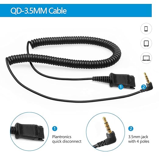 VT 3.5mm-Cable for Plantronic-QD headsets Smartphones-Mobile - Laptop PC Connected with Single 3.5mm Jack Port (PLT-QD)