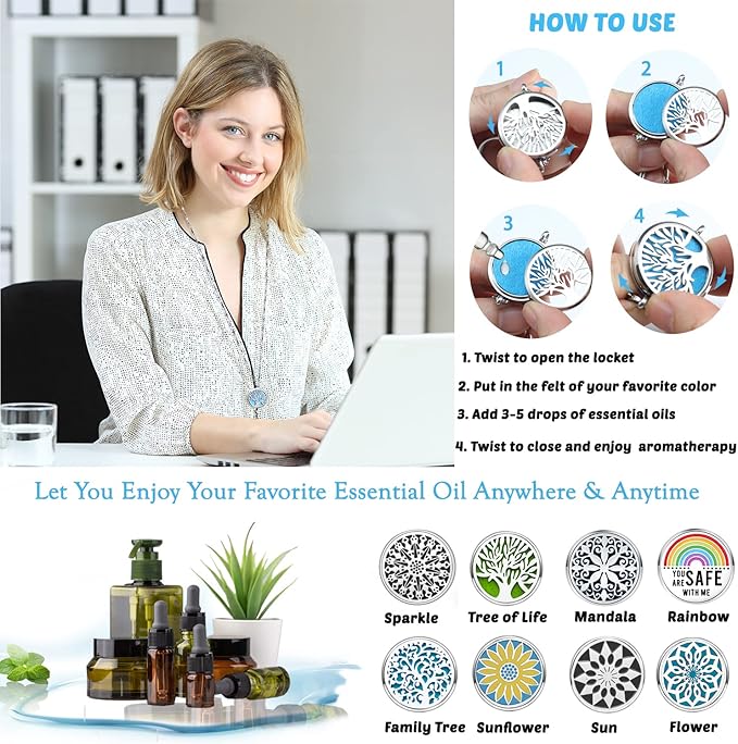 - PERFECT SIZE AND AROMATHERAPY: The 34" chain and 25" retractable wire cord is perfect for using the keys or badge and saves you much time as you don't have to take it off all the time. Meanwhile, it's also a simple but elegant diffuser necklace. You can keep your favorite essential oil close to you to keep relax during working. Change the bonus aromatherapy felt pads to match your outfits or mood, make every day a fresh start!