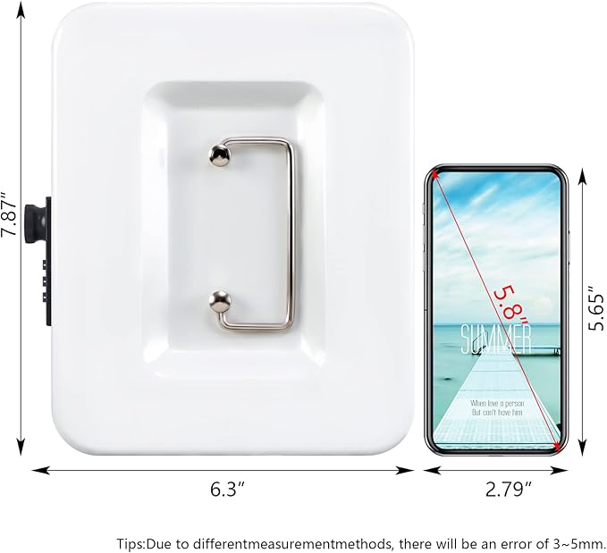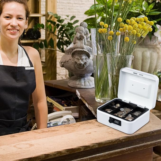 KYODOLED Cash Box with Combination Lock,Safe Metal Box for Money,Storage Lock Box with Money Tray,7.87"x 6.30"x 3.54" White Medium