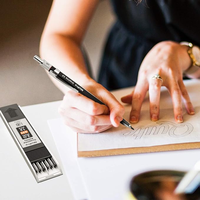 - Value Package: Come with 1pcs 2.0mm mechanical pencils, 5 tube of pre-sharpen lead refill (HB, 2H, 2B, 4B, 4H), 60pcs refill in total, 1pcs eraser and 1pcs lead sharpener.Each lead is 2.0 mm wide, 120 mm tall, carbon based