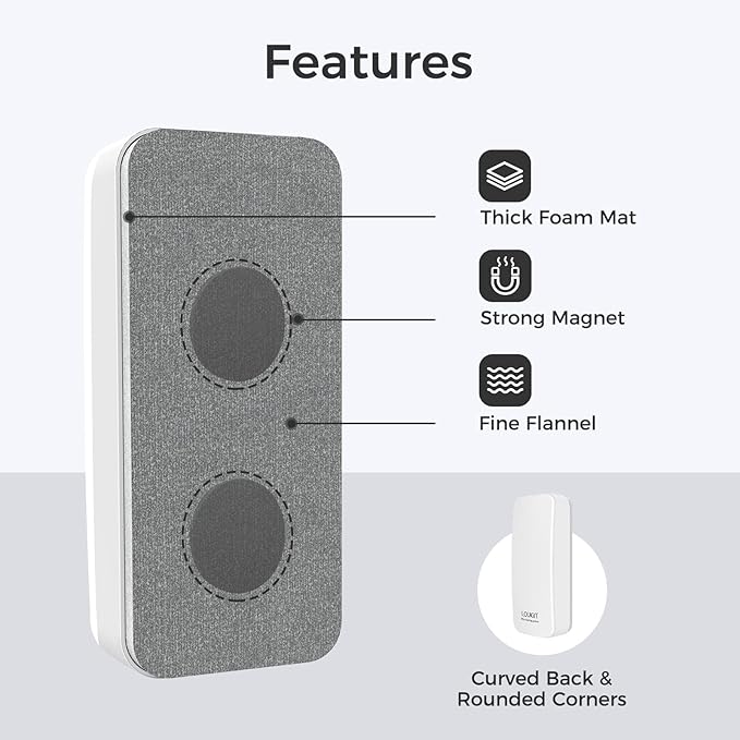 LOUKIN Magnetic Dry Erase Eraser, Whiteboard Eraser, Glass Board Eraser(White), One Bottle of 3.4 fl oz Whiteboard Cleaner Included, for Classroom, Home and Office Use