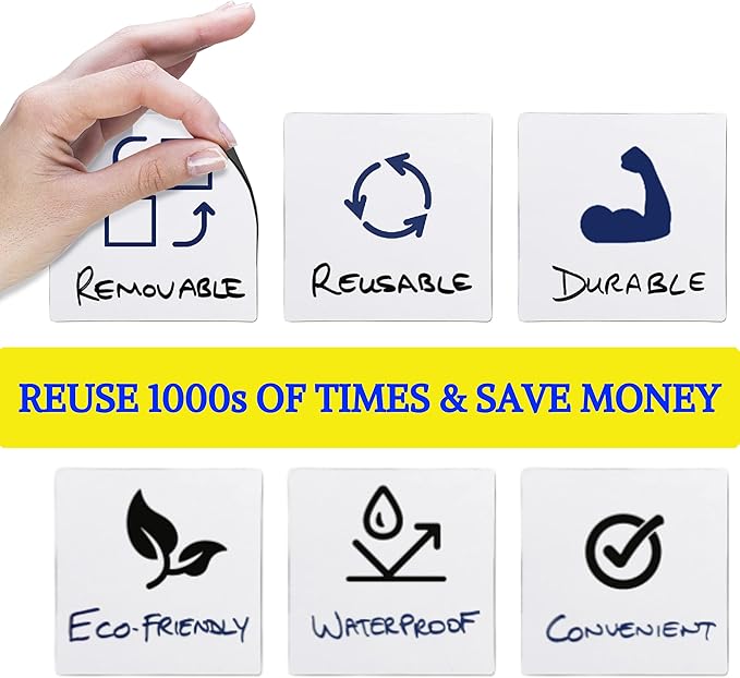 - Reuse 1000s of times & save money: These mini whiteboard stickers use the latest Nano-Sticky technology allowing you to move them from place to place and surface to surface for years, so you can stop spending money on disposable paper notes – includes 2 high-quality magnetic dry erase markers