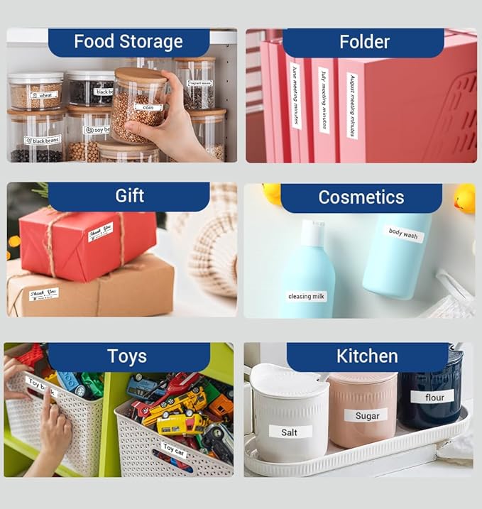 - √ Multipurpose: Perfectly for home/office/organization and more application.It's suitable for labeling,storing,marking and more endless tasks in daily life.Even work well in low temperature. It's water,abrasion resistant and BPA free