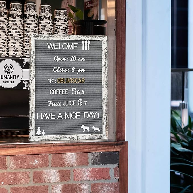 - The 12x16 rustic wood frame letter board with a metal sawtooth bracket for wall-mounted display and an adjustable metal stand for table top display. And comes with Plastic Organizer. The compact felt board design resists fading and holds letters securely in place yet makes it quick and easy to edit your board. We provide a beautiful box packaging, is the best choice for Your friends! (Your friends & family will LOVE the packaging!)