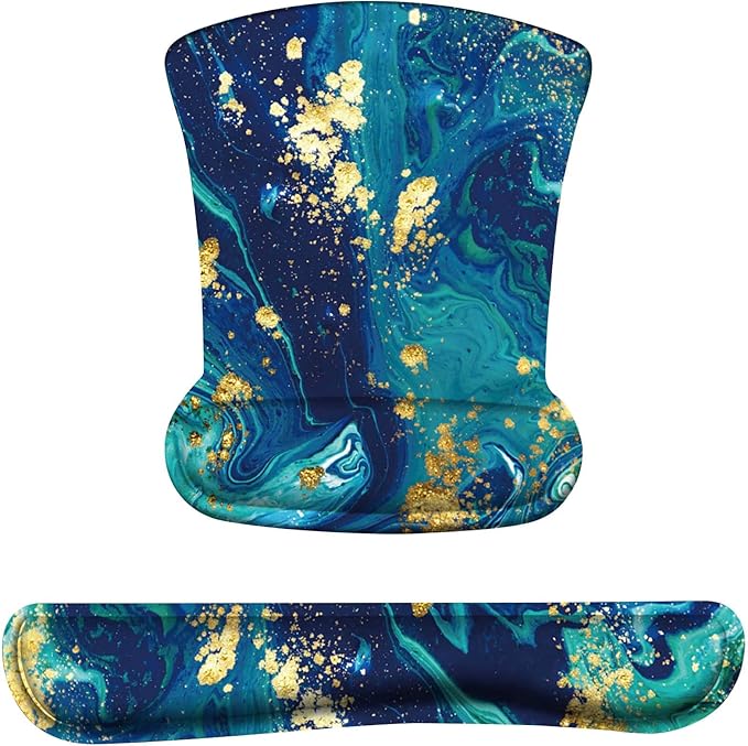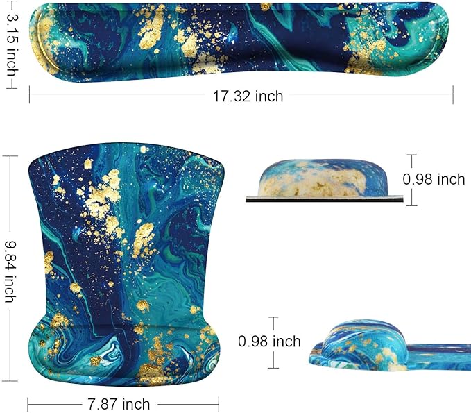 iCasso Keyboard Wrist Rest and Mouse Wrist Rest Pad, Made of Memory Foam, Ergonomic Support, Easy Typing and Relieve Wrist Pain, Perfect for Gaming, Computer, Office, Laptop (F-Blue Gold)