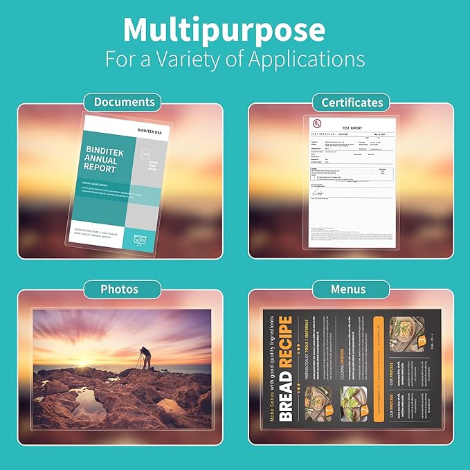 - 【Multipurpose Protection】 These thermal laminating pouches are ideal for preserving a variety of documents, such as reports, certificates, photos, and menus. They provide strong protection against wear and tear, making them suitable for use in schools, offices, and homes. Ideal for teachers, students, and professionals to keep materials safe and well-maintained.