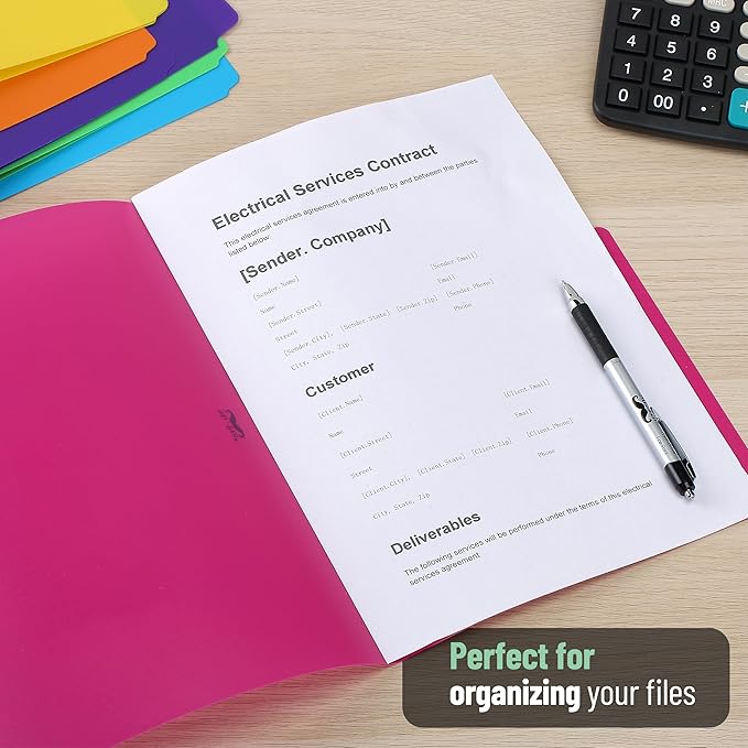 Mr. Pen- Poly File Folders, 1/3 Cut Tab, 6 Pack, Assorted Colors, Letter Size, Colored Letter File Folders for Office Supplies