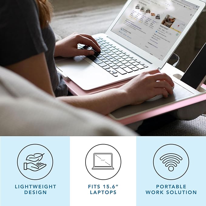 - Durable Surface: Work with confidence on our lap desk's solid surface, featuring a blush pink color, ensuring optimal air circulation to prevent your laptop from overheating.