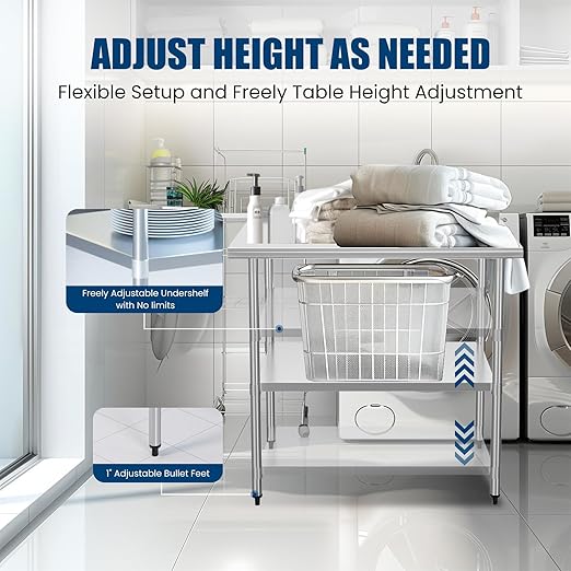 - Enduring Quality: NSF certified, stainless steel work table is made from premium 430 stainless steel for the tabletop and galvanized steel for the undershelf, resistant to wear and corrosion. Ideal for the demands of commercial kitchens