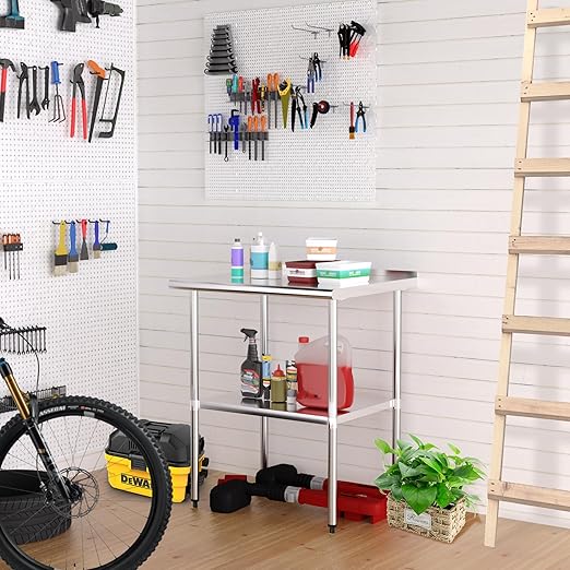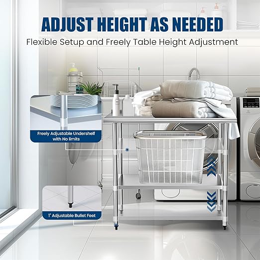 - Heavy-Duty Worktable: Measuring 30x24x34 inches, the stainless steel kitchen table provides a spacious workspace. Can support up to 420 lbs on the tabletop and 320 lbs per undershelf, accommodating various storage needs