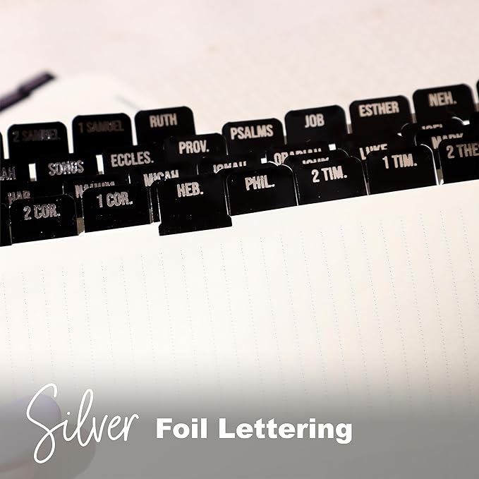 - Easy Installation: Tabs come with directions and a tab guide for perfect placement in your Bible; Each tab is pre-cut and self-adhesive so simply peel, align in your Bible, and stick!