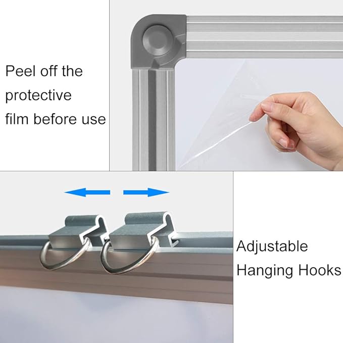 - 🌈Smooth and durable writing surface (precise size 18 x 12 inch): Magnetic dry eraser can easily erase writing marks and is not prone to bending bubbles. The silver aluminum alloy (never turning black) frame is made of Abs plastic corners, with no sharp or pointed edges