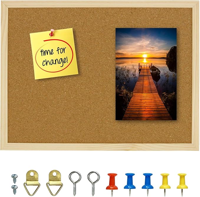- Classic Design: With natural cork and sturdy wooden frame, will add a classic look to your office or home. Superior quality and easy to hang. Both strong and stylish, will make your space more shining
