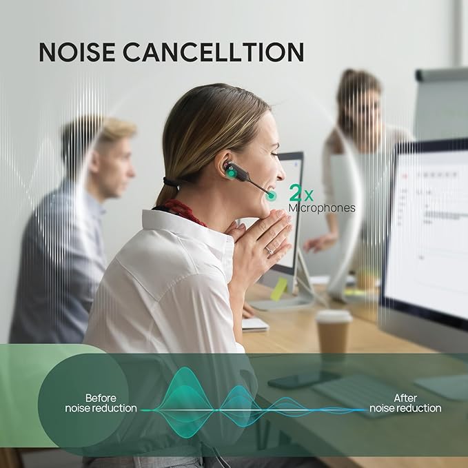 - Noise canceling Microphone: The wireless phone headset is designed noise canceling dual mic with Acoustic Shield Technology, which can keep background noise out of your call with noise; MS Teams settings allow you to change the noise reduction filter to high, reducing background noise in the office and making calls clearer.