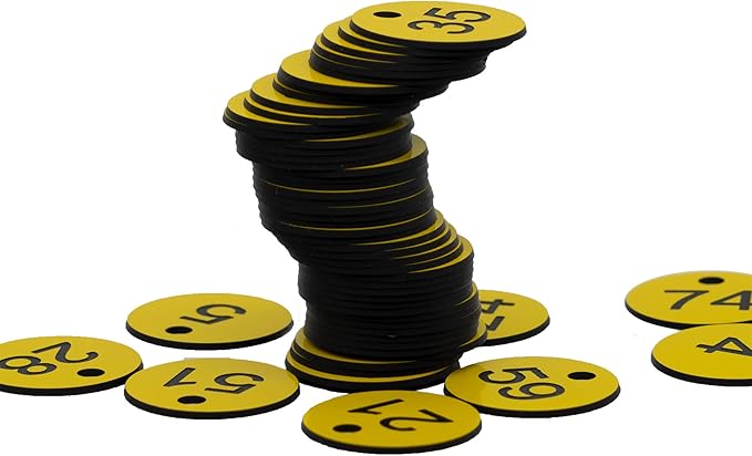 StayMax Plastic ID Number Tags Engraved Tags Key Tags Without Key Rings (1-50, Yellow)