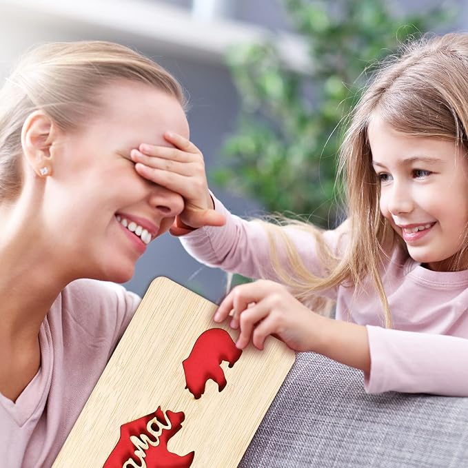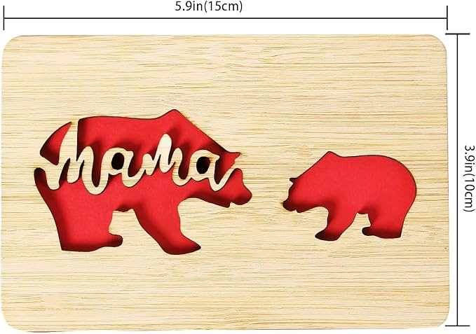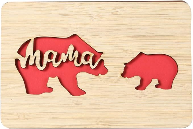 Handmade Birthday Card,Wooden Mother's Day Card from Daughter or Son,Mother's Day Gifts for Mum from Kids,Lovely Bear Baby and Mom Pattern Design,Unique Birthday Presents for Mum