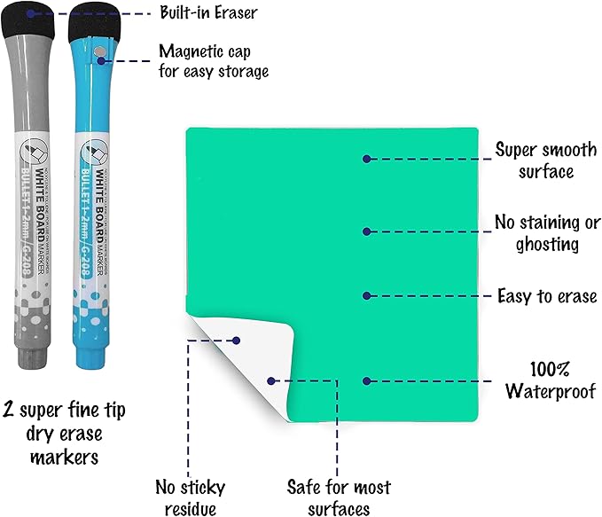 - Reuse 1000s of times & save money: These dry erase notes use the latest Nano-Sticky technology allowing you to move them from place to place and surface to surface for years, so you can stop spending money on disposable paper notes – includes 2 high-quality magnetic dry erase markers