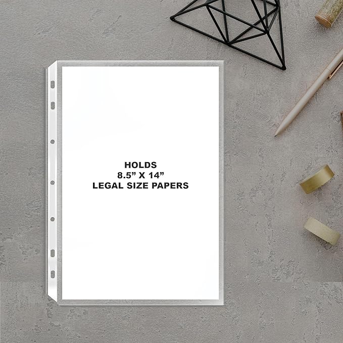 - Wide Application: Our sheet protector is suitable for documents, photos, recipes, certificates, records, reference materials and so on. Pay attention to the size of sheet protector holds 8.5 x 14 inch sheets legal size.