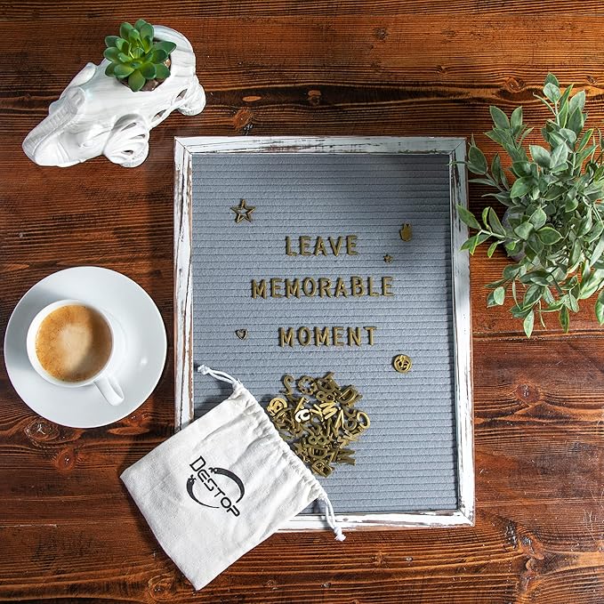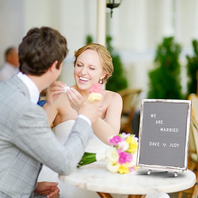 Felt Letter Board with Rustic Vintage Frame and Stand 12x16 inch,Grey Changeable Letter and Message Board Includes 792 Letters, Numbers and Symbols, Hook to Hang, 2 Canvas Bags