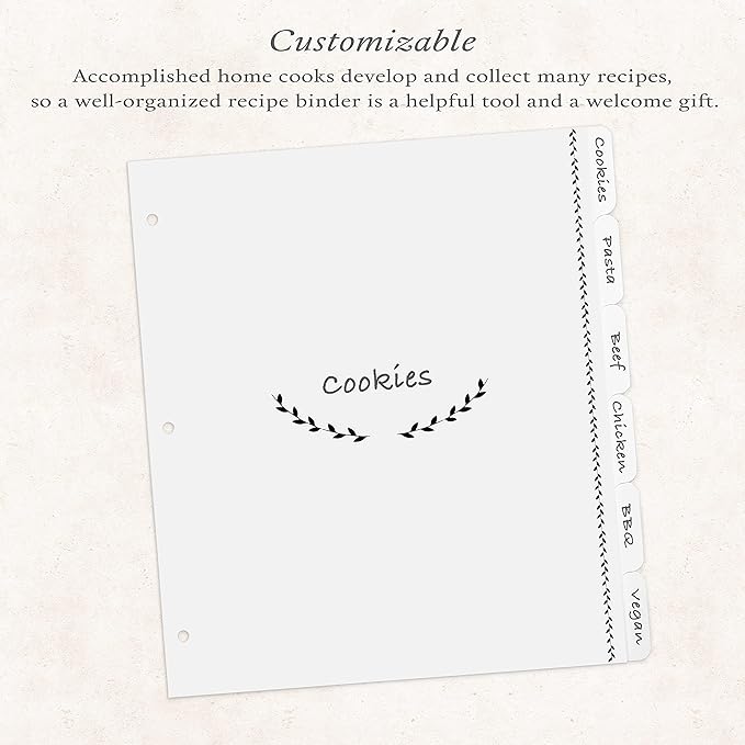 - Customizable | Write the category of your choice on each tab: “holiday desserts,” “side dishes,” and so on.