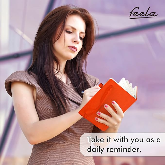 feela 3 Pack Notebooks Journals Bulk with 3 Black Pens, A5 Hardcover Notebook Classic Ruled Lined Journal Set with Pen Holder for Work Business Journaling Note Taking, 120 GSM, 5.1”x8.3”, Orange