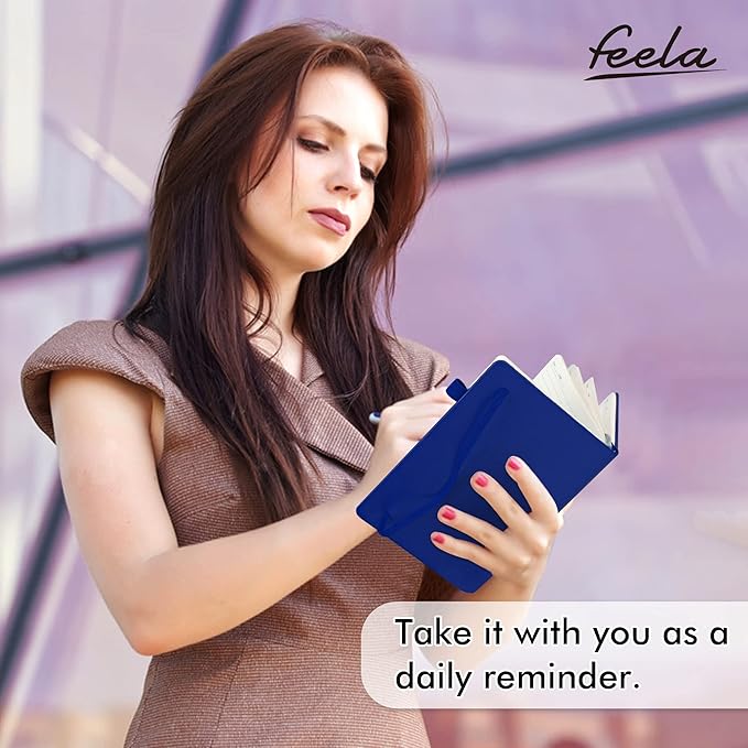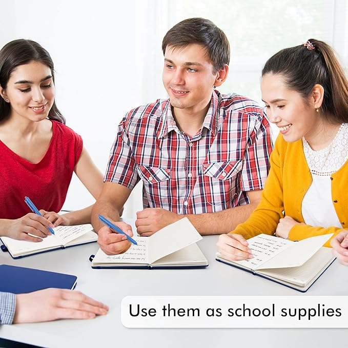 - Feela 3 Pack Classic Ruled Notebooks contains 3 classic navy ruled sturdy cover notebooks and 3 Black Retractable Pens. Each of the notebooks measures 8.3” x 5.1”, which is perfect to carry and easily held by young girls and boys. These black cute pens are customized to be placed in the pen holder, which is pretty convenient.