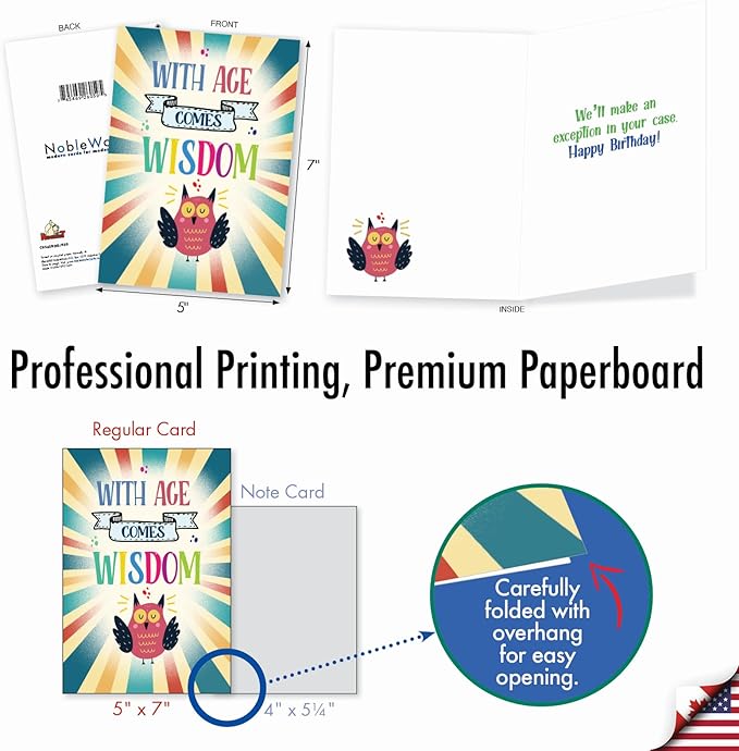 NobleWorks - Funny Happy Birthday Note Card with Envelope (4.63 x 6.75 Inch) - Bday Greeting Card for Women and Men - Congrats Bday Celebration Notecard - Age and Wisdom C9565BDG