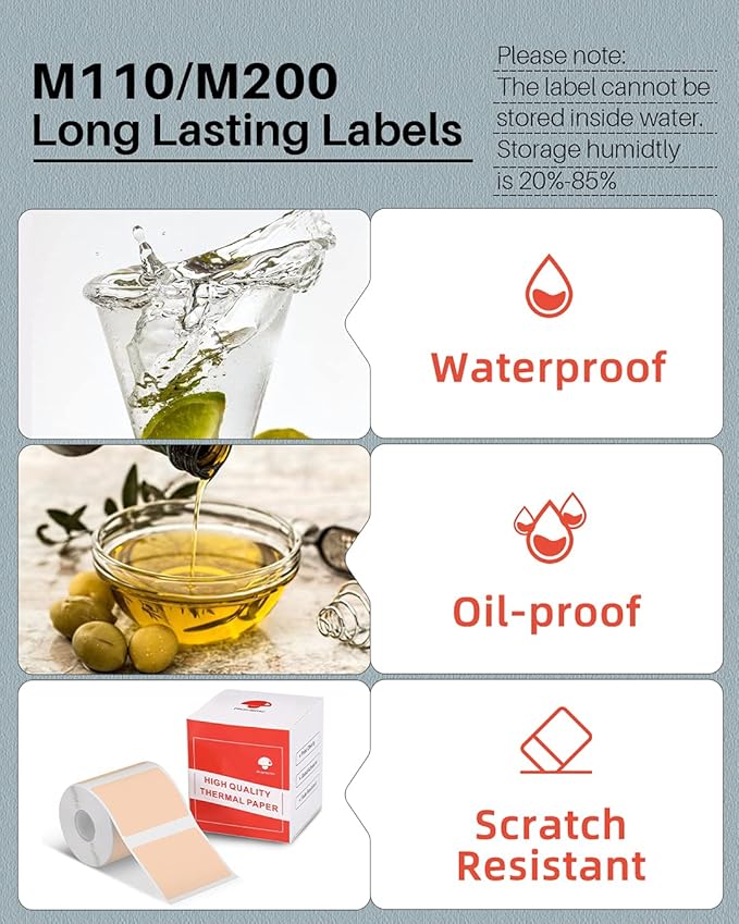 - √ Clear Printing- Phomemo self-adhesive Multi-Purpose labels are water resistant, oil resistant, abrasion resistant and strong adhesion