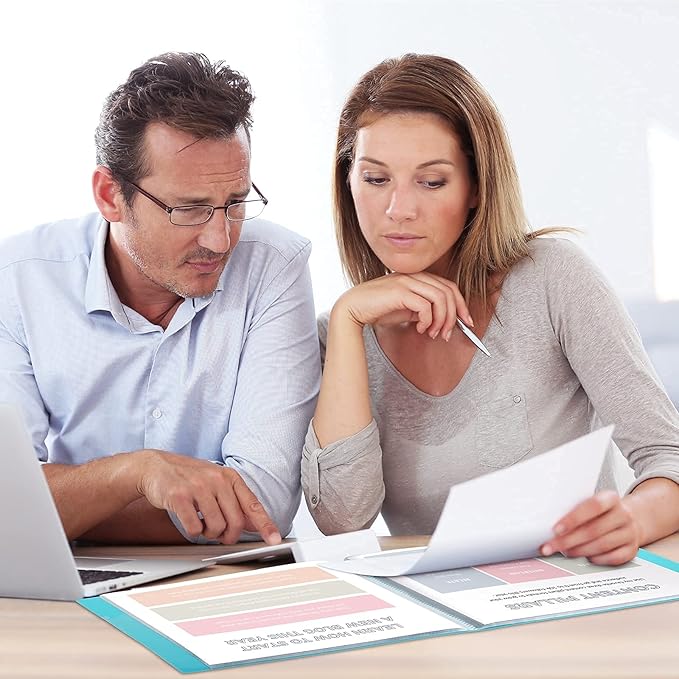 - Flexible Poly Cover: Resists moisture, spills and dirt, Folder with clear sheet protectors provides long term storage protection for your documents or artwork.