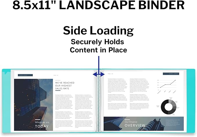 - 1 Aqua Plastic Binder Folder: 24 bound (non-refillable) side loading plastic binder sleeves, Displays 48 viewable 8.5 x 11" letter size pages. Front cover has inside pocket for loose paper.