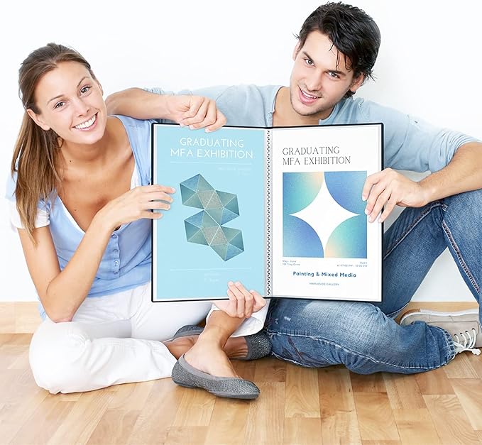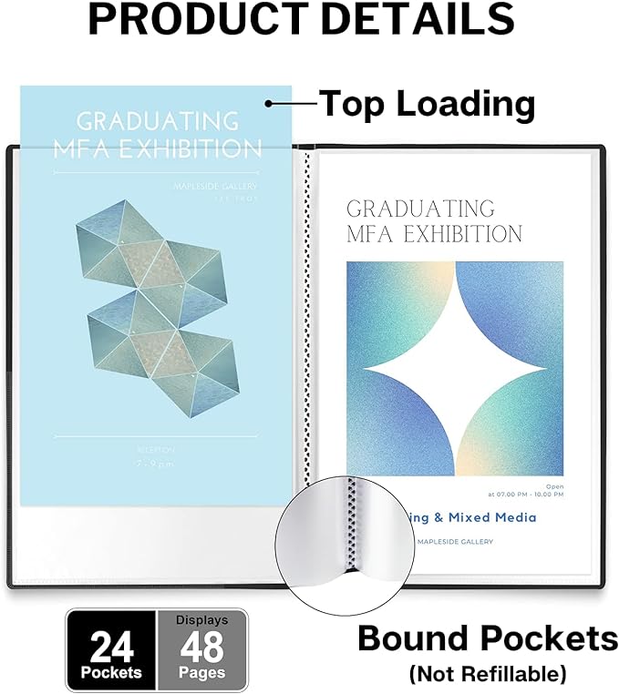 - Large Portfolio Folder 11x17: Portfolio photo album with 24 bound (non-refillable) pockets, displays 48 viewable pages. Custom spine insert to organize and display art storage with ease.