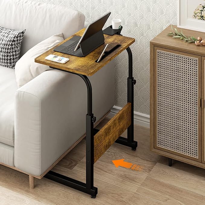 Klvied Mobile Standing Desk, Rolling Desk with Cup Holder, Portable Laptop CouchTable, Small Computer Desk, Bedside Table, Mobile Laptop Stand, Work Desk for Home Office, Walnut