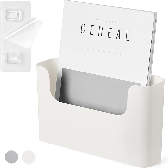 - MULTIFUNCTIONAL WALL FILE ORGANIZER - Can be installed on home office wall to organize envelopes, papers, scissors, mails, documents, letters, bills, living room magazines, bedside items like phones, kindles, tablet, toddler books. Put kitchen refrigerator to hold cook books, weekly menu, coupons/gift cards.