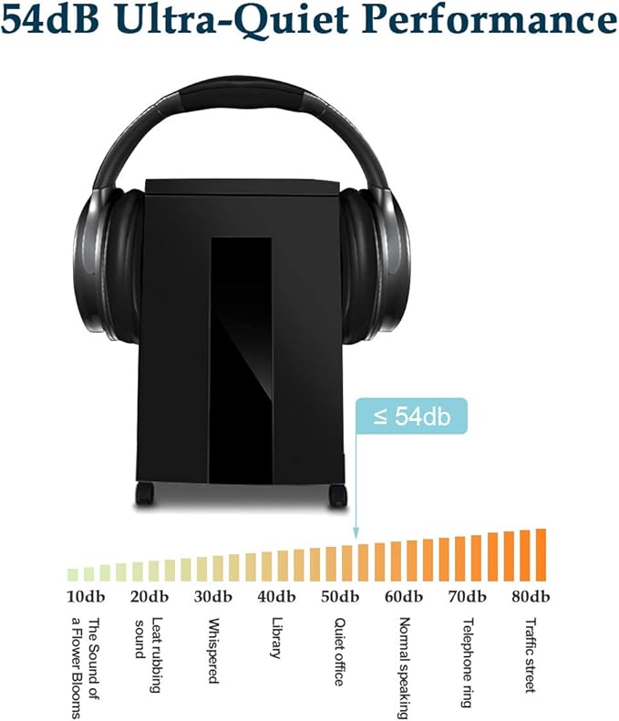 - LOW NOISE LEVEL 54dB ultra quiet heavy duty shredder has 6 gallons pull-out waste bin with large transparent window