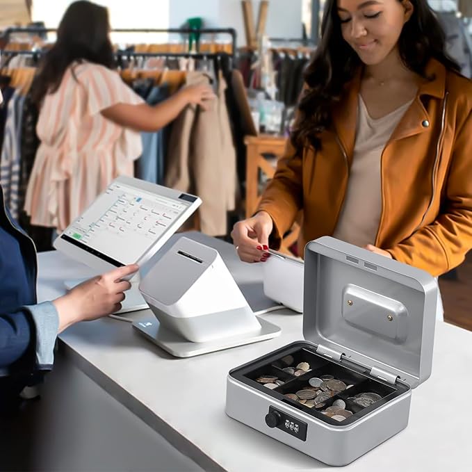 - DURABLE AND UNBREAKABLE: The cash boxe is unbreakable in our daily life due to strong metal material. Besides, the inner removable money tray is so sturdy built that you have no reason to worry about the security of your items.