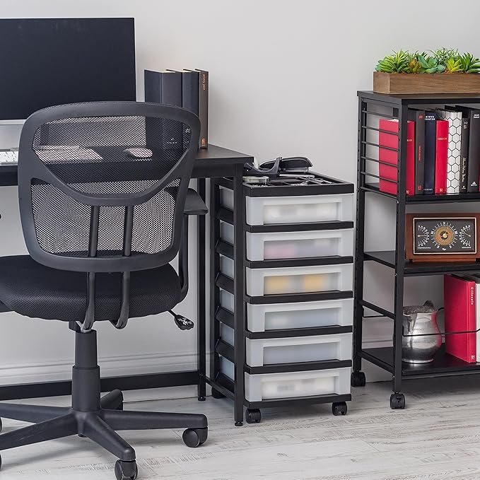 IRIS USA Plastic Drawer Storage Organizer Rolling Cart, with Wheels Casters, 6-Drawers, for Classroom Art Craft Supplies Dresser Closet Bathroom Dorm Bedroom Laundry Room, Black/Pearl