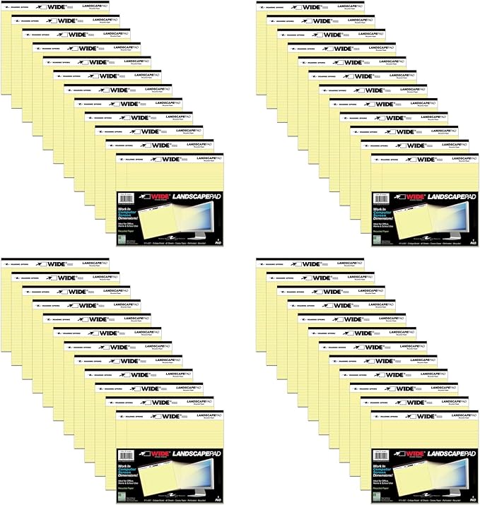 Roaring Spring Case of 48 of Landscape Note Pads, 11"x9.5", 40 sheets of Heavyweight 20# Recycled Canary Paper, College Ruled W/Margin, Micro-Perforated