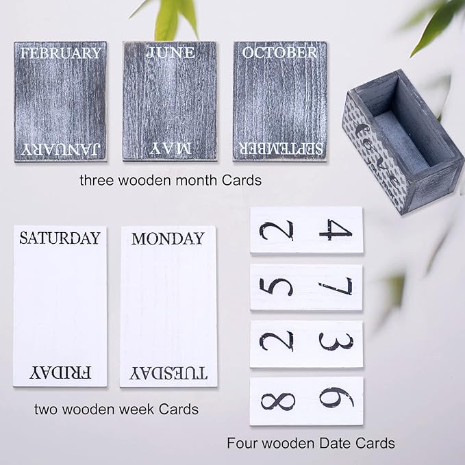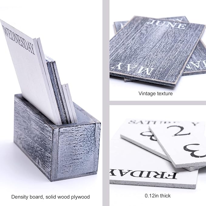 - VINTAGE WOOD BLOCK CALENDAR: High quality wooden calendar for the month and date display. With 4 number boards, 3 month boards and 2 week boards.