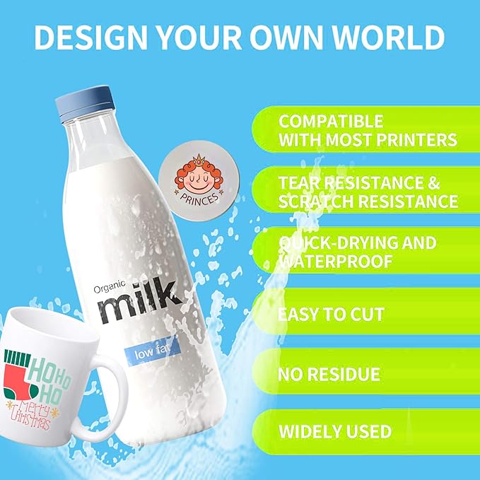 - 【𝐄𝐚𝐬𝐲 𝐓𝐨 𝐔𝐬𝐞】These sticker paper are Easy to Cut both by hand,Our unique Backing Layer makes Peeling easy, The dry quickly ink and high quality glue makes application Simple and Smooth