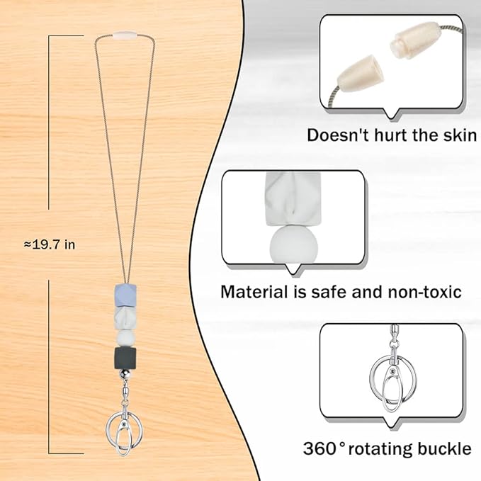 • 【Premium & Safty Material】These super cute lanyards include food grade silicon and wooden beads. They are lightweight and comfortable, no need to worry about them breaking