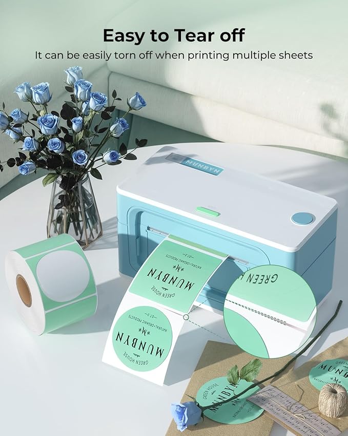 MUNBYN 2 Inch Green Circle Thermal Sticker Labels, Self-Adhesive Round Direct Thermal Labels for Logo Design, QR Code, Inventory, 750 Sheets/1 Roll
