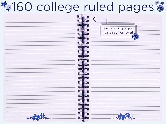 - INCLUDES 160 PAGES: Spiral notebook includes 160 high-quality, lined pages that withstand ink bleed-through; pages feature college ruled lines with a perforated edge to easily take to-dos, notes, and reminders on-the-go