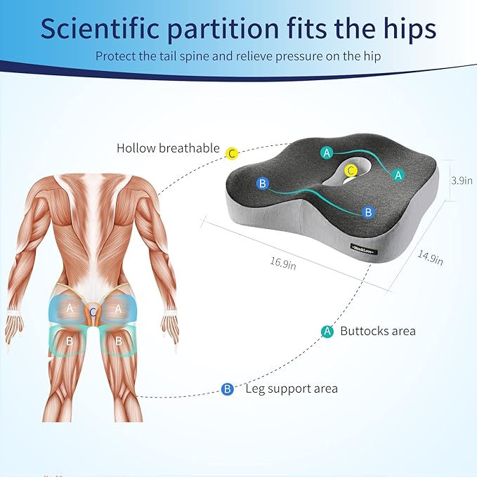 - ✔️[Best Gift and Satisfaction Guarantee] - Coccyx Seat Cushion is a perfect gift for parent, office staffs, drivers, students and teachers who sit for a long time. Risk-Free Purchase -30 days hassle free return policy,12 months product after-sales support ! Let your shopping more assured!
